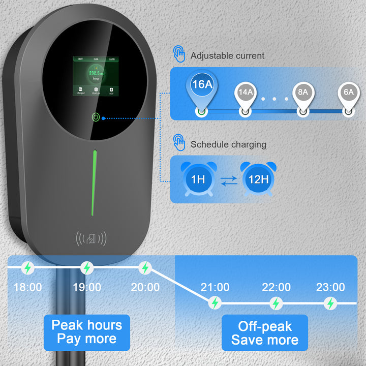 En plus de ses caractéristiques de sécurité exceptionnelles, le Boîtier mural Y083 prend en charge connectivité Wi-Fi et contrôle à distance via une application mobile. Tu peux vérifier l'état de charge, démarrer ou arrêter la charge, et même mis en place horaires de charge personnalisés à tout moment et en tout lieu. Par exemple, avec Recharge programmée 24 heures sur 24 fonctionnalité, vous pouvez charger automatiquement pendant heures creuses Lorsque les tarifs d'électricité sont plus bas, vous pouvez économiser sur vos coûts tout en optimisant votre temps. gestion intelligente améliore non seulement la commodité, mais rend également la charge plus économique et efficace.