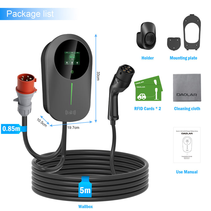 Daolar 11KW Wallbox Borne recharge de Voiture électrique avec APP, Triphasé 16A Intelligent EV Chargeur avec RFID & Protection AC + DC